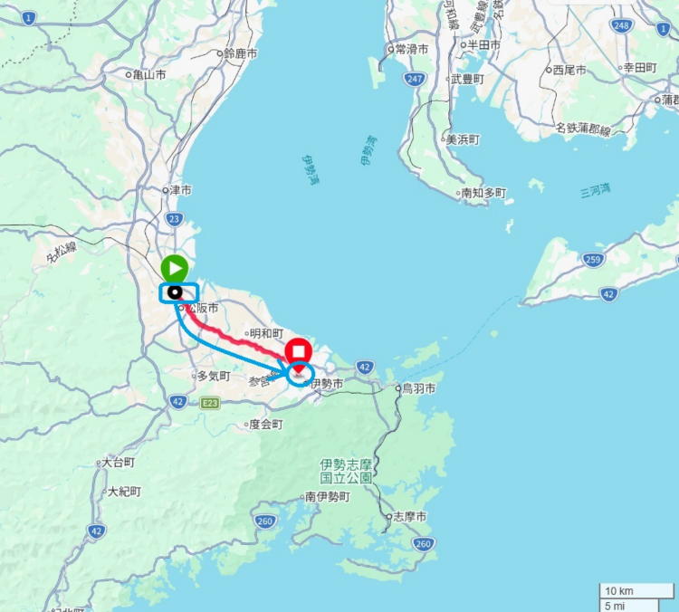 | 2026/2/16(月) 先月下旬にアレルギー性の喘息を発症。 回復に時間がかかり、前回から1ヶ月経った今日、ようやく沿線徒歩旅を再開します。 今回は近鉄山田線の続き、松ヶ崎駅からのスタートです。 まずは松阪駅まで車で移動して、コインパーキングに車を止め、近鉄でひと駅戻ります。 ![]() 前回ゴールの松ヶ崎駅には8時45分に到着しました。 駅前の歩道で歩く準備。 □0857 松ヶ崎(まつがさき)駅 ![]() ![]() 近鉄山田線2日目のスタート! 天気は晴れ。 風は追い風が少し強い。 気温は11.5度です。 今日はこの後、風が7mとかなり強くなるとの予報。 上に2枚、下は1枚重ね着で歩きます。 最初の区間は、車を止めた松阪駅までの約3km。 ![]() この区間は国道166号を歩きます。 今日の目標は約24km先の宮町駅。16時半には到着したいところ。 最初のラップが12分18秒。 追い風でもあり良いペースです。 -0922 橋 ![]() 橋で今日最初のアップダウンをこなします。 -0932 裁判所前交差点 ![]() 歩き始めてから2.6km。 国道から右折します。 ![]() 「今日の水路蓋」は松阪市? □0938 松阪(まつさか)駅 -4157歩- ![]() ![]() 朝来た時とは反対側の駅舎へ到着です。 JR側とは違って小さな駅舎。 汗ばんできたので、ここで上を1枚脱ごう。 -0949 再スタート ![]() この辺りには200円とか250円とかの駐車場がありました。 こっちに止めれば良かったかな。 でも朝少し遅めだったので、多分埋まってたんだろうね。。。 ![]() 高架下を抜けて、生活道路を歩きます。 ![]() あれ? 右の線路は近鉄かと思ったらJRだ。 ![]() 地図を見ると確かにJRと近鉄が並行しています。 ![]() 「今日の水路蓋」2。 これは何処のだろう。。。。 □1019 東松阪(ひがしまつさか)駅 -6952歩- ![]() ![]() 松阪方面のみに駅舎がある2面2線の無人駅です。 -1026 再スタート この区間は今日最長の4.4kmです。 -1032 杉橋 ![]() 生活道路を少し歩いてから金剛川を渡りました。 ![]() 橋を渡って右左折。 畑作地域の道を歩きます。 ![]() ![]() 左手を近鉄、右手をJRの列車が走り抜けました。 -1049 上川大黒交差点 ![]() 国道42号線との交差点のすぐ先の道を左折して右折。 ここまで歩いてきた一本左の道へ進みます。 ![]() ![]() 両方向へ列車が走って行きました。 -1112 県道高架 ![]() -1117 東松阪第14号踏切 ![]() 非舗装路で踏切を渡ります。 ![]() 住宅地に入ると駅はすぐそこ。 □1127 櫛田(くしだ)駅 -13371歩- ![]() ![]() ホームは地上の2面2線。 改札口は地下のようです。 地下を抜けて反対側からスタート! -1135 再スタート あれ? 駅の線路が多いかも。。。 ![]() よく見ると、2面2線の間に2本の線路がありました。 -1143 櫛田橋 ![]() 櫛田川を渡ります。 ![]() 櫛田川の川原に立入禁止のネットが張ってありました。 こういうの珍しいかも。 ![]() 橋を渡って左折。 道なりに右斜の道へ進みます。 ![]() 「今日の水路蓋」3。 今度は何処のかな? □1208 漕代(こいしろ)駅 -16796歩- ![]() ![]() この駅も松阪方面側のみに駅舎のあるタイプです。 ホームは2面2線の無人駅。 お昼の時間になったので、ここで昼ごはんにしましょう。 さて、作戦タイム。 目標の宮町駅までは約12km。 16時頃には着けそうです。 となるとその先1.4kmの伊勢市駅、さらに0.6km先の宇治山田駅も視野に入ってきました。 お昼ご飯ご馳走様でした! -1233再スタート この区間は1.6kmと、伊勢市まで行かないのであれば今日最短の距離。 ![]() 引き続き県道428号線を歩きます。 ![]() この先、伊勢街道に沿って歩いていくようです。 ![]() 「今日の水路蓋」4。 今日は多いですね。 ![]() 街道らしく緩やかにうねる道を歩いていきます。 ![]() 「近鉄斎宮駅」の看板に従って左折。 ![]() 駅前に解答がありました! さっきの水路蓋の市町村章は明和町とのことです。 □1257 斎宮(さいくう)駅 -19168歩- ![]() ![]() ![]() 山形屋根のきちんとした駅舎。 扉のある待合室もあります。 その待合室で椅子に座り小休止。 そしてトイレがある〜! ありがたやありがたや。 お借りします! -1310 再スタート ![]() この区間も県道428号線を歩きます。 ![]() 順調に歩いていると通行止め! 恐る恐る近付いてみると、歩行者は通れるとのこと。 良かったぁ。 ![]() 二駅連続で駅の看板がありました。 こういうのは助かります。 □1349 明星(みょうじょう)駅 -23413歩- ![]() ![]() 入り口上の半円の屋根が特徴的な駅舎。 有人駅です。 ![]() 奥に列車が沢山停まっています。 車両区があるようです。 (調べてみると、正しくは検車区と言うようです) -1400 再スタート -1408 丁字路 ![]() 左折して、再び県道428号線に入ります。 ![]() 引き続き県道428号線を歩いています。 この辺りは道幅が狭くなってきています。 それなりに車は走っているので気を抜けません。 -1428 伊勢市 ![]() ![]() 駅への道に入りました。 □1442 明野(あけの)駅 -27901歩- ![]() ![]() 櫛田駅と同じような駅入口。 改札は地下にあります。 線路が2面2線の間に2本あるのも同じです。 ![]() 4脚あるベンチに座って小休止。 -1451 再スタート この区間は2.3km。 県道428号線からは離れます。 ![]() 