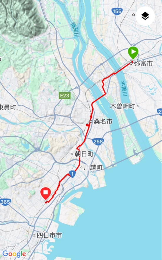 | 2025/1/22(水) 2025年2回目の沿線旅は前回の続き、近鉄弥富駅から近鉄線を四日市方面へ歩きます。 今日はゆっくりスタート(寝坊したとも言う)。 スタート駅、近鉄弥富駅前のコインパーキングには0950に到着しました。 車の中で出発準備。 駅前のトイレを借りてスタートです。 □1022 近鉄弥富(きんてつやとみ)駅 ![]() ![]() 近鉄名古屋線2日目のスタート。 天気は快晴に近い晴れ。 雲はほとんどありません。 気温は8度。 西よりの風が吹いていて、夏標準装備ではさすがに肌寒いですが、歩けば暖かくなるでしょう。 今日の目標は20km弱先の霞ヶ浦駅。 駅間距離は短めなので1630目標です。 -1025 弥富駅前交差点 ![]() 右折して国道1号線に合流です。 ここからは木曽川を越えるまで1号線歩きです。 -1041 尾張大橋 ![]() 木曽川を渡ります。 多分、関西本線歩きで歩いた橋だと思うんだけど。。。。 ![]() ![]() 少し離れた鉄橋を近鉄とJRの列車が走り去りました。 -1046 三重県 ![]() 川の真ん中で県境を越えます。 -1054 尾張大橋西詰交差点 ![]() 1km弱の橋を渡りきりました。 交差点を右折します。 ![]() 線路沿いの道を歩きます。 ![]() 列車が本当に多くて、感覚的には3分に1本位通ります。 □1113 近鉄長島(きんてつながしま)駅 -4922歩- ![]() ![]() 駅舎が下り線側にある2面2線の駅。 ![]() 立派な駅前ロータリーがありますが、駅入口はロータリー側に無いというなんとなく違和感のある構造です。 -1124 再スタート この区間は今日最長の4.5km。 今度は長良川と揖斐川を渡ります。 ![]() 今日のカラーマンホール! いきなり現れました。 ところでこのマンホールって、どこの自治体? -1128 丁字路 ![]() 1日200円と安いコインパーキングのある角を左折します。 ![]() 2回曲がって小さな川沿いの道に入りました。 向こうに見えるのは長良川の河口堰かな? ![]() いきなり足下から猫が走り去りました。 今日の猫! 猫が飛び出すまで気付かなかった。。。。 -1146 国道1号線合流 ![]() 再び国道1号線に合流です。 -1151 伊勢大橋 ![]() 長良川と揖斐川を渡ります。 ![]() 左手にさっき見えた長良川の河口堰が並んでいます。 ![]() 右側の遠くを「ひのとり」が通過しました。 右前からの強めの冷たい風が吹き付けて、肌寒いというよりは寒い! 橋の右側(北側)の歩道橋を歩いているので陽光もかなり遮られる状態。 こんなことなら左側を歩けば良かったが、今さら道は渡れないし。。。後の祭りです。 木曽川を渡るときはそんなに寒くなかったので油断してました。 -1159 丁字路 ![]() 10分弱で、中洲の丁字路に到着。 すぐに揖斐川を渡ります。 -1206 伊勢大橋西詰交差点 ![]() 橋を渡りきりました。 これで木曽三川をクリア! ![]() 今日の工事柵はカエルさん。 -1218 大橋通一交差点 ![]() 交差点を右折します。 □1229 桑名(くわな)駅 -11341歩- ![]() 関西本線歩きの時と違う気がする。 新しめの駅舎です。 ![]() ![]() 2階に上がって改札口へ。 JRと養老鉄道の改札の先に近鉄の改札はありました。 ん?養老鉄道? そうか、関西本線歩きの後、養老鉄道歩きの時にこの駅に来てました。 この駅舎知ってました(苦笑) トイレが。。。。あった! 橋のところの寒さのせいで、とっても行きたかったので本当に助かりました。。。。 ![]() ![]() ![]() バスターミナルの周りに今日のカラーマンホール2〜4がありました。 大漁大漁! やっぱり夏標準装備では肌寒かったので、上着を1枚重ね着しよう。 -1248 再スタート この区間は短い1km強です。 -1259 信号交差点 ![]() 右折します。 JRと近鉄が走る員弁街道踏切を渡るとすぐ先、左側に駅です。 □1305 益生(ますお)駅 -13651歩- ![]() ![]() 踏切のすぐ先の三角屋根の駅舎。 踏切が頻繁に鳴り、列車が通ります。 -1311 再スタート ![]() 小学校の横の細い路地を抜けて右折。 少し広目の道に出ました。 ![]() どうやら旧東海道を歩いているようです。 ![]() 今日の鐘楼! 了順寺さんの鐘です。 ![]() 旧街道っぽく、緩やかにうねる道を進みます。 -1338 町屋橋北詰交差点 ![]() 坂を少しだけ上って交差点を右折。 ![]() 三度(みたび)、国道1号線に合流です。 ![]() 橋を渡った先で、1本右側の道へトラバース。 ![]() 一里塚跡の碑があるので、どうやらこの道も旧東海道のようです。 □1357 伊勢朝日(いせあさひ)駅 -17942歩- ![]() ![]() 下り線は駅舎前で工事中のため、警備員さんが一緒に写ってしまいます。 なので上り線の駅舎を撮影。 駅は2面2線の自動改札無人駅です。 ところでアンタ、人のすぐ風上でタバコ吸うんじゃない! 今日は食事を持たずに歩いています。 さすがにそろそろお腹が空いてきました。 少し大回りして、近くのコンビニに向かいます。 -1409 再スタート ということで国道1号線に出て、ローソンでお昼ごはんです。 ![]() 近くの一刻堂も捨てがたいのですが、時間がかかりそう。 -1414 ローソン ![]() 結局ローソンで購入したおにぎりとサンドウィッチのご飯となりました。 駐車場の隅でいただきます! -1436 再スタート -1447 川越町 ![]() 伊勢湾岸道の高架下を抜けるとすぐに、川越
