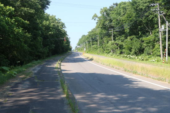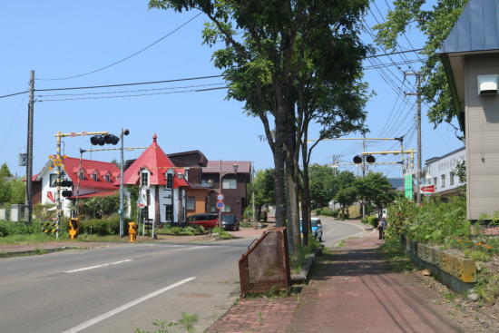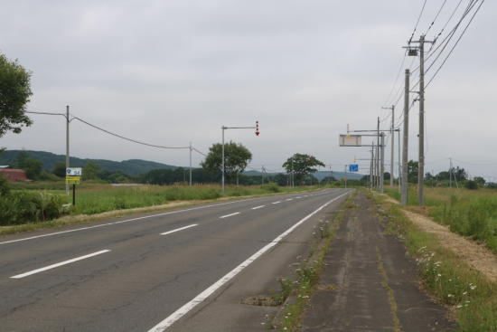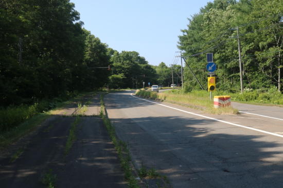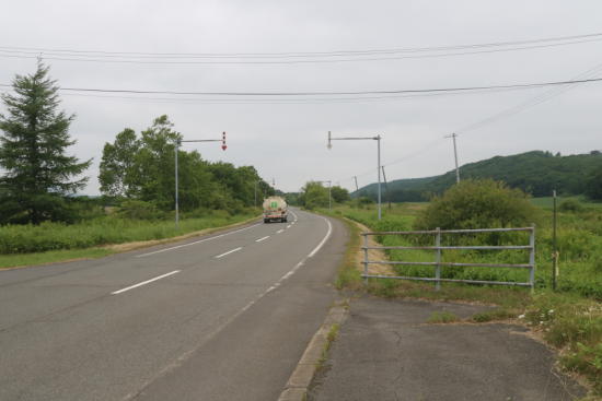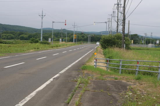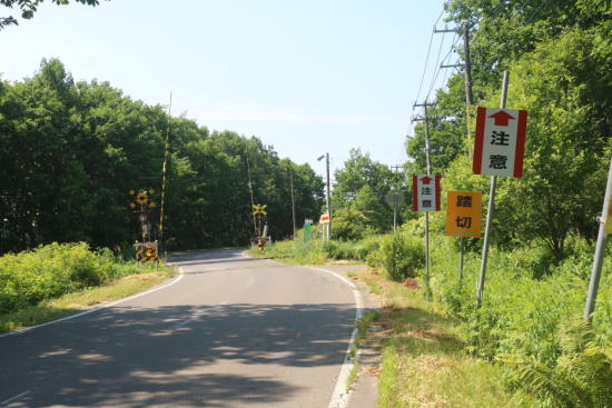 国道から右折して1km強の気持ち良い直線道路を歩き、直線が終わったところに踏切があった。