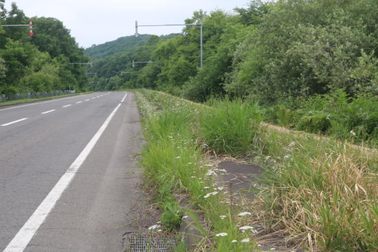 中央分離帯の途中からじわじわと上り坂が始まる。