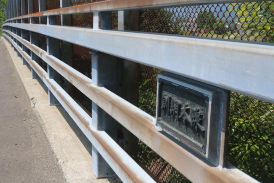 と、車道側のガードレースを見て書いたら、歩道橋側に有りました!