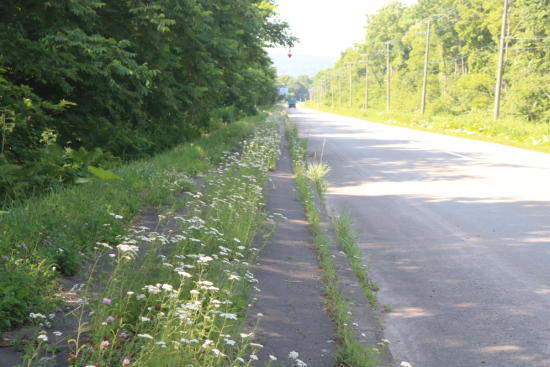 路肩が狭くなったとしても、歩道があるから歩きには全然影響無し。