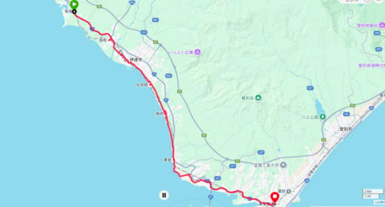 これで今回歩く予定のうち東室蘭から長万部側は終了。