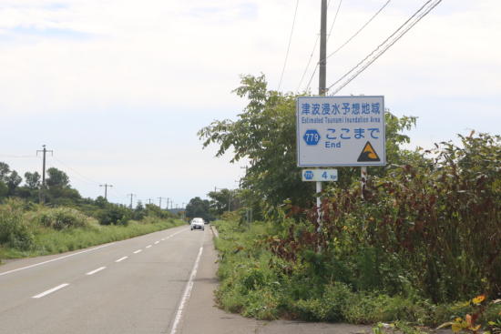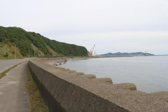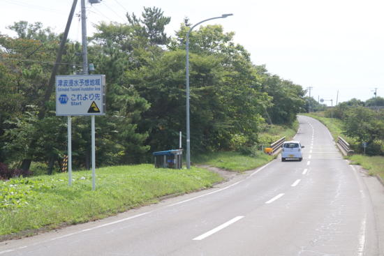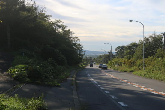 左折してここまで歩いて来た海沿いからの道道に戻った。