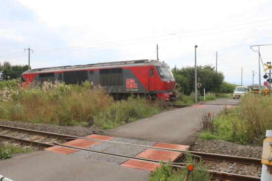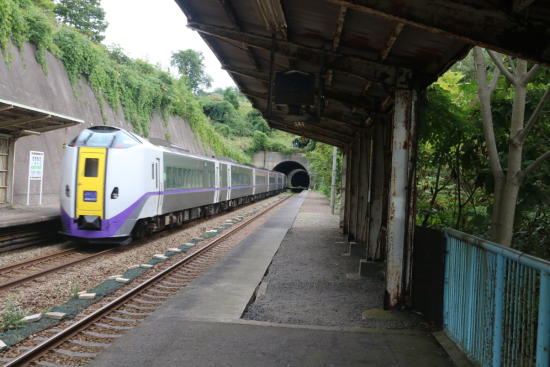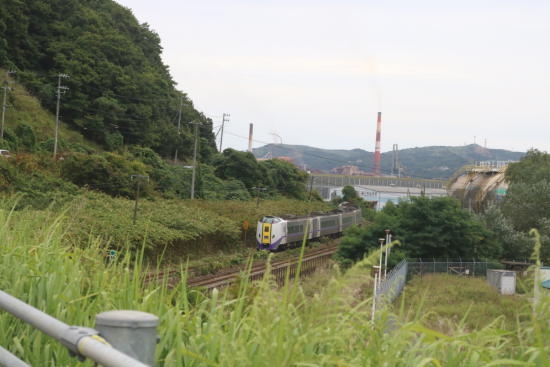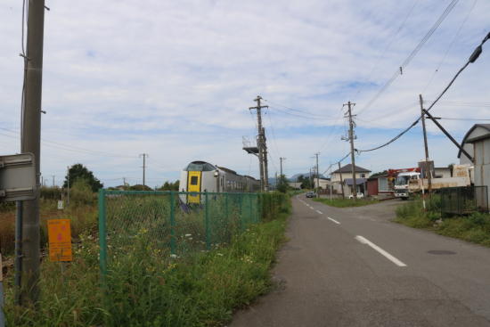 渡ったところで踏切が鳴り始め、長万部方面に特急列車が走って行った。