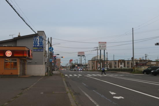 すぐ横の中央分離帯の切れたところを渡れば近いが、交通量が多い道で危険だ。
