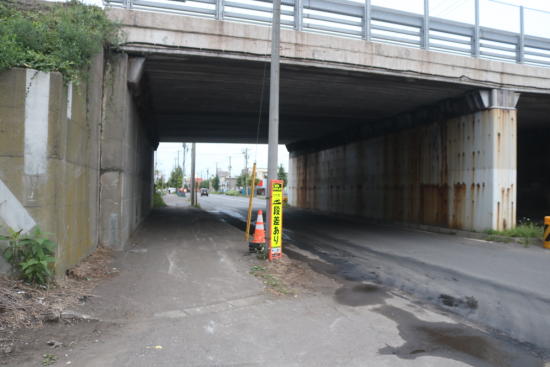 脚の負担があるが安全には代えられない。歩道橋を渡ろう。