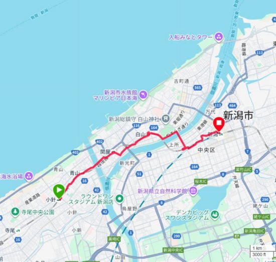 今日は越後線で残った小針駅から新潟駅間を歩く。