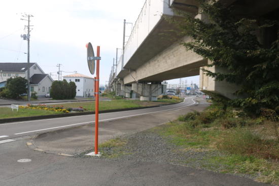 左折して踏切を渡り新幹線の高架をくぐりすぐに右折。