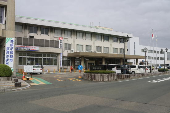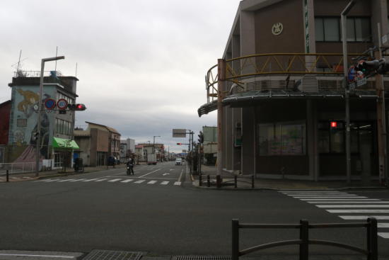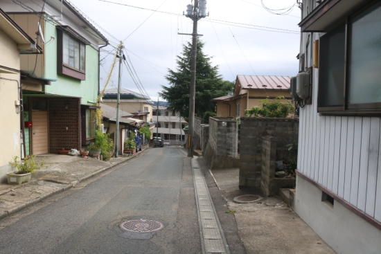 その市役所の前の細い道へ入るが、これが急な下り坂だ。