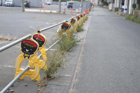 「今日の工事柵2」は、岩手県のゆるキャラ「わんこきょうだい」。