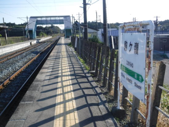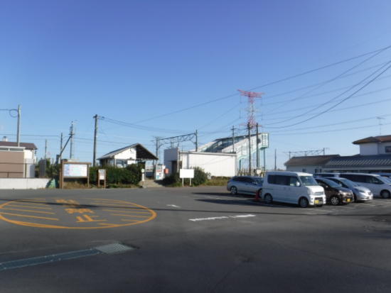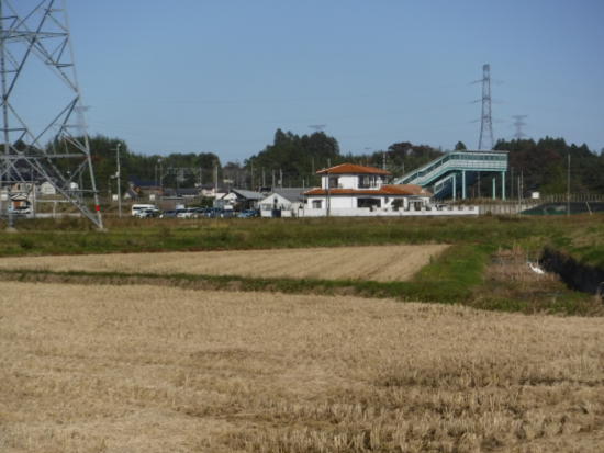 坂を下りて田んぼの間の道を歩いていると、右側に駅が見えて来た。