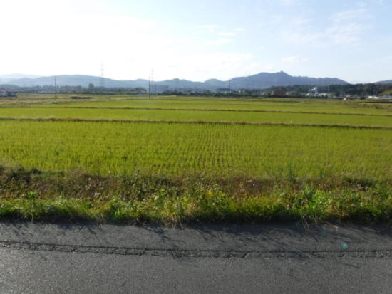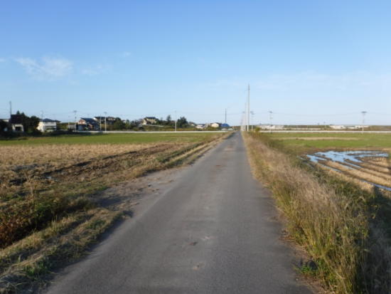 道は田んぼの間の道に。