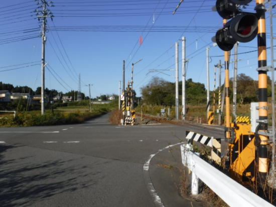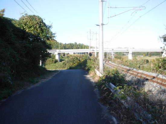 踏切を渡らず線路沿いに進む。