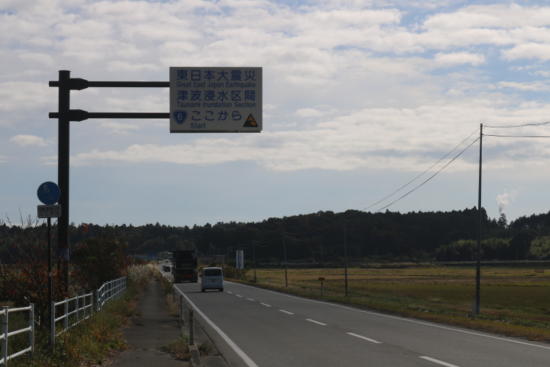 今日2回目の「東日本大震災津波浸水区間ここから」看板。