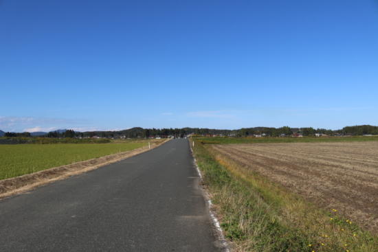 道は小さな集落を抜け、田んぼの間をうねって続いている。
