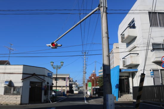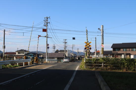 踏切を渡ると道の左右に住宅の連なる地域となった。