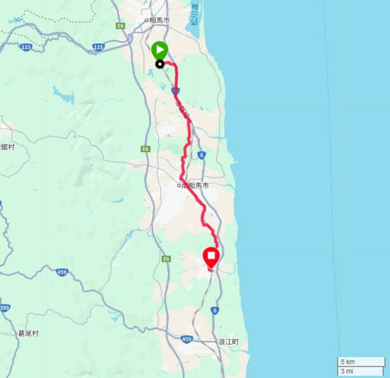 まずは国道6号線に向かって東へ進む。