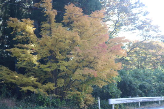 坂のピークのすぐ先、今回の旅で初めての綺麗な黄葉だ。