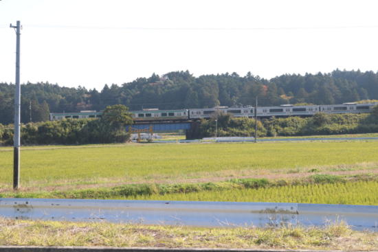 左の方を列車が走って行った。