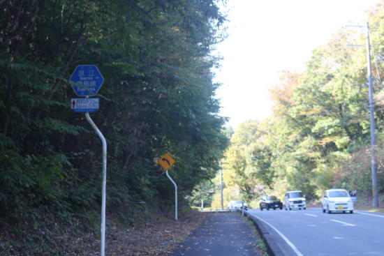 坂の途中で、歩道は左側へと変わった。