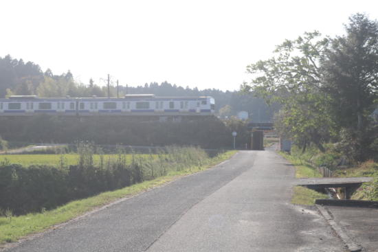 丁字路を右折すると、前方を列車が走り去った。