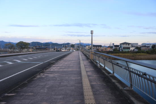 歩道用、車用、日豊本線と、3本並ぶ橋を渡る。