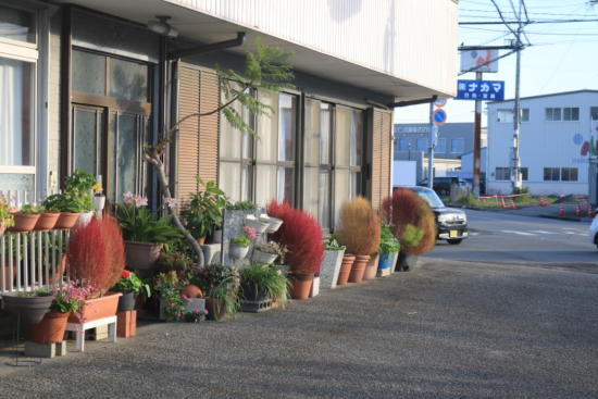 民家の前に「今日のコキア」。