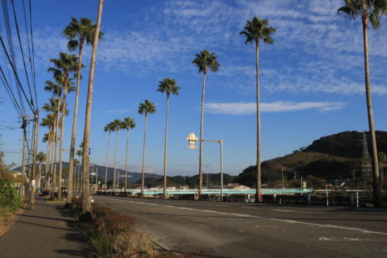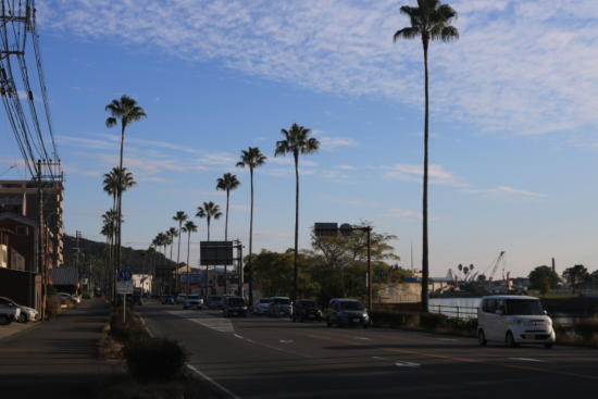南国らしい木が並ぶ道。
