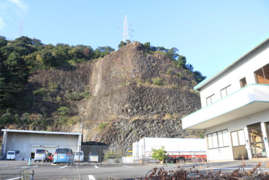 左側を見上げると、すごい崖だ。