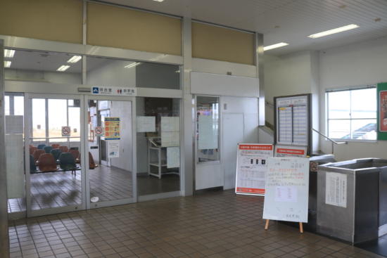 待合室スペースは小さく、ベンチも3人座るのがやっとの幅。