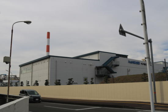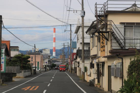 道の両側に工場が並ぶ。