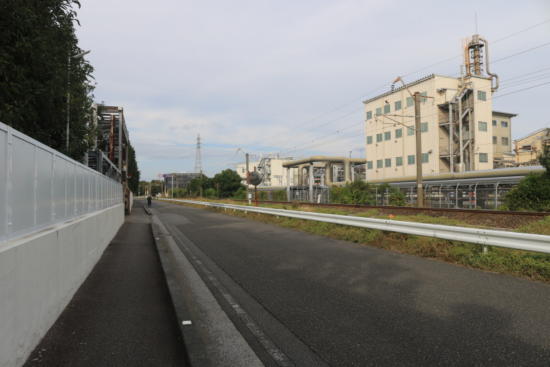 道が線路から離れ始めると、両側は工場地帯から住宅地に変わった。
