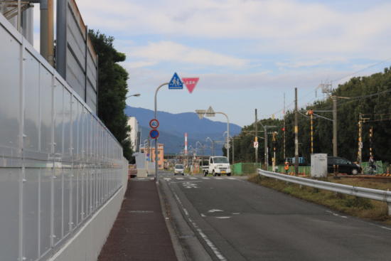 すぐの踏切を渡り国道10号線に左折合流。