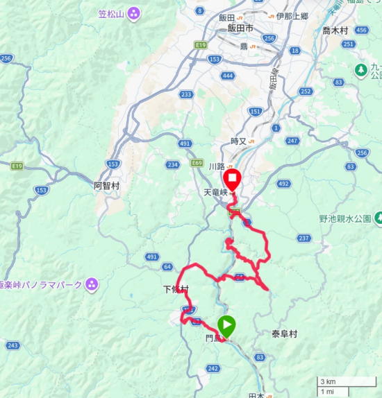 今日の目標天竜峡駅までは残り約20km。