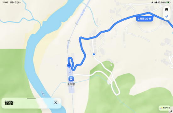 駅間が長いにも関わらず平均時速がここまで3.2kmしか出ていないのはアップダウンが厳しいことの証明。