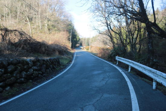 さあ、まずは来た道を県道1号線まで約3km戻る上り坂だ!