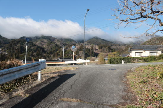 標高として駅と丁字路との中間地点に到着した。小休止。